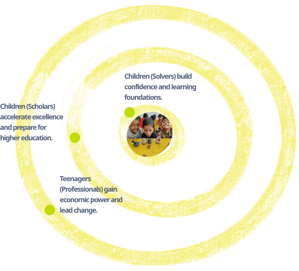 Across our community centers, every learner’s journey—child, teenager, or parent—is guided through a continuum of learning-to-livelihood programs that move families from survival to growth.